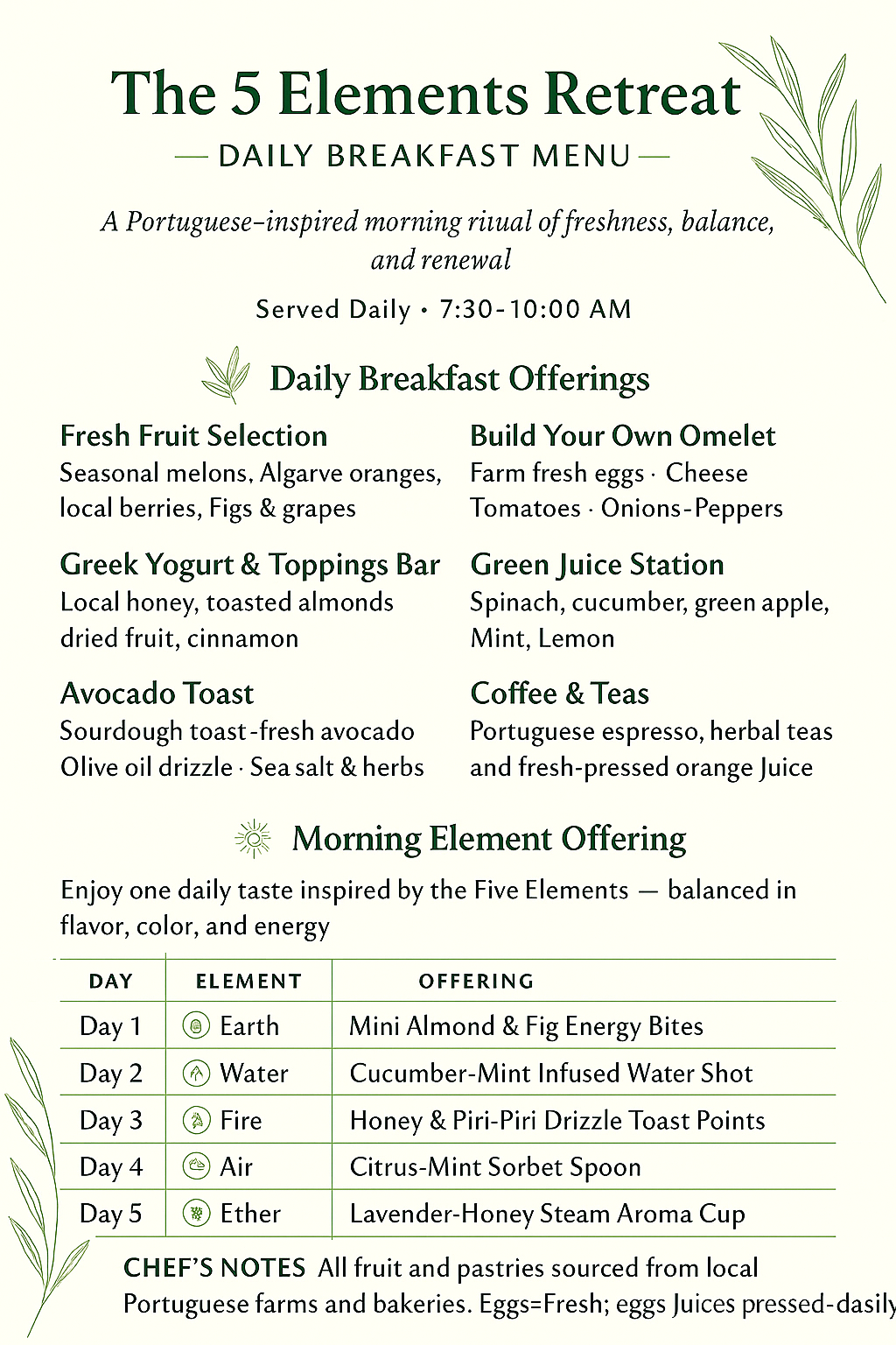 Gather for a final gourmet celebration honoring your transformation. Savor exquisite Portuguese flavors mindfully prepared to nourish body and soul.